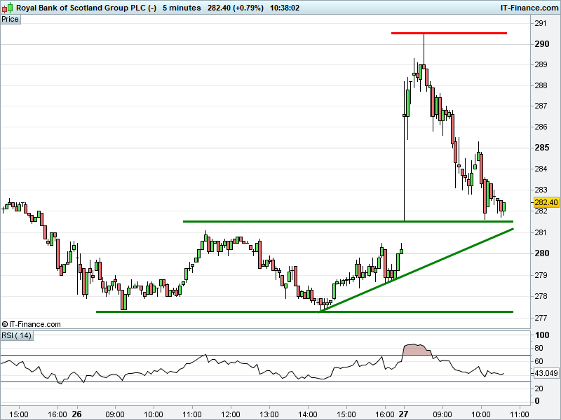 • Will the price fall towards lows of 277p (-1.9%)? or;
