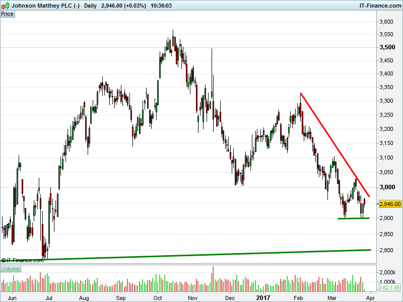 1. Will the price fall towards lows of 2800p (-5.0%)? or;
