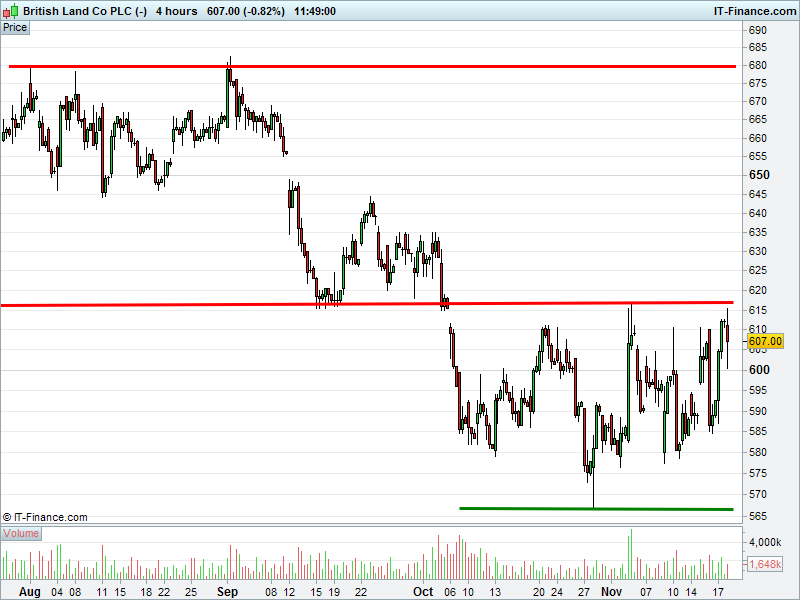 1. Will the price rise towards highs of 680p (+12%)? or;