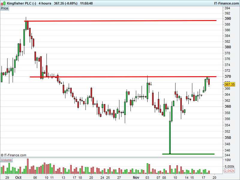 1. Will the price rise towards highs of 390p (+6%)? or;