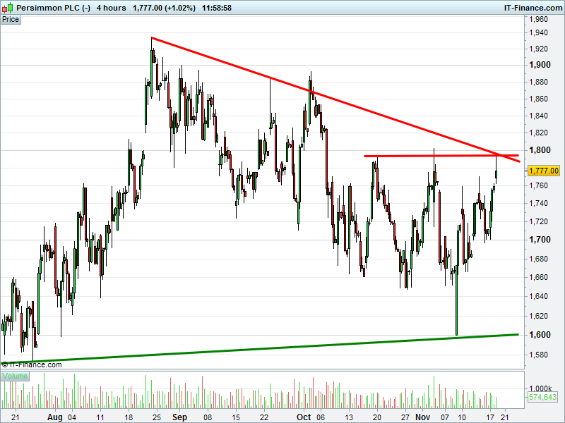 1. Will the price rise towards highs of 1935p (+9%)? or;