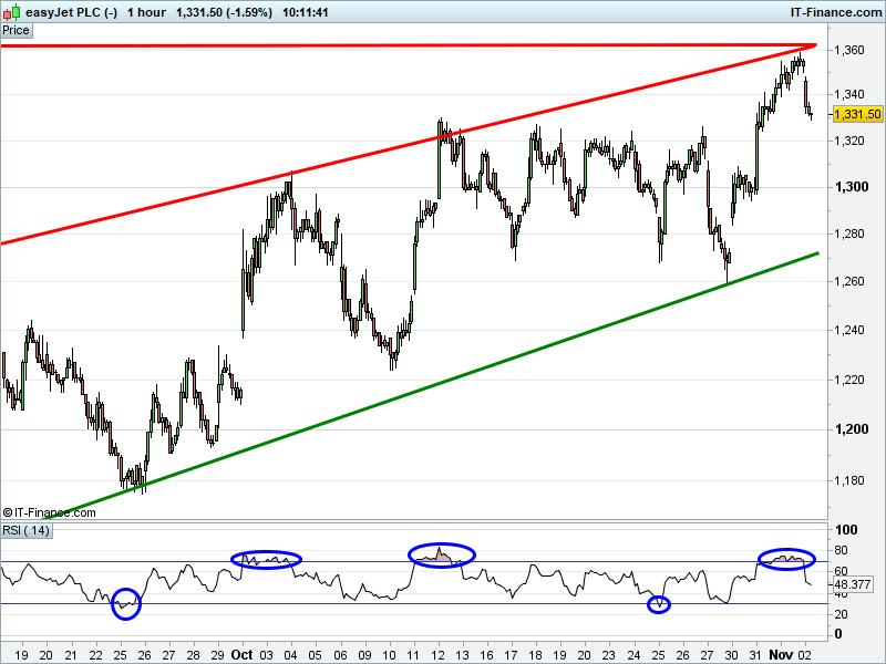 • Will the price fall towards lows of 1280p (-3.9%)?