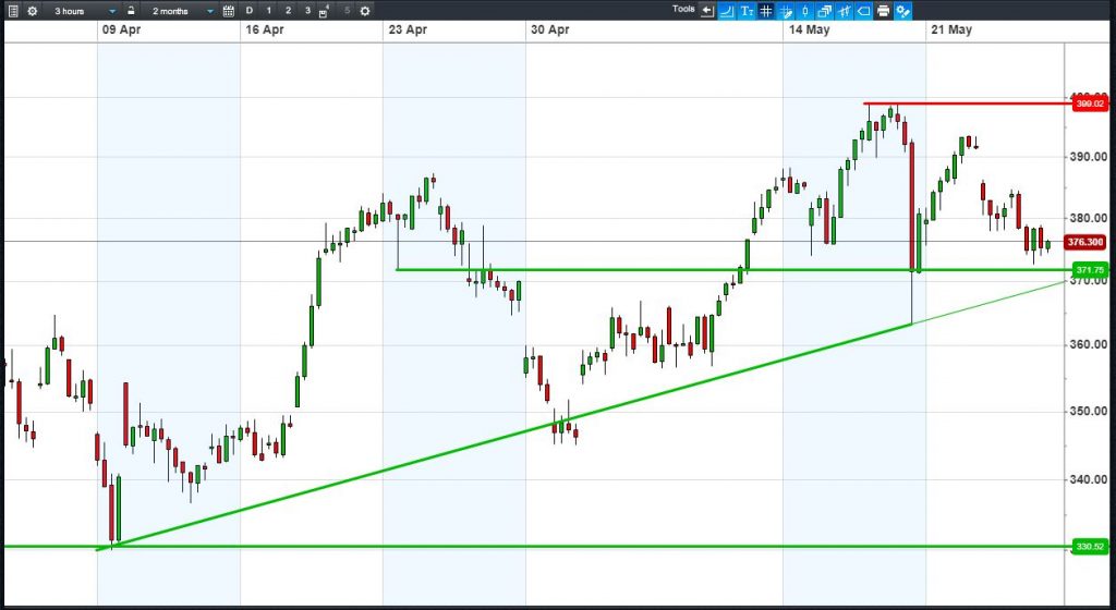 • Will the price rise towards highs of 399p (+6.0%)?