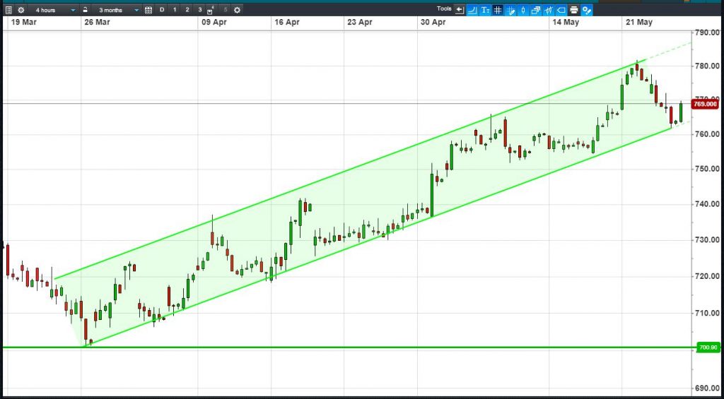 • Will the price rise towards highs of 790p (+2.7%)?