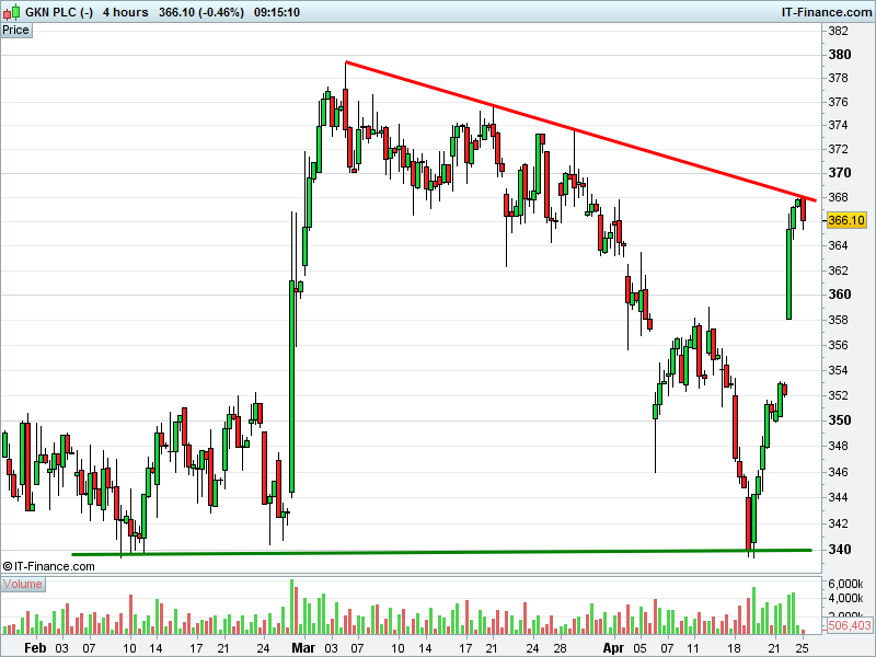 1. Will the price rise towards highs of 379p (+3.5%)? or;