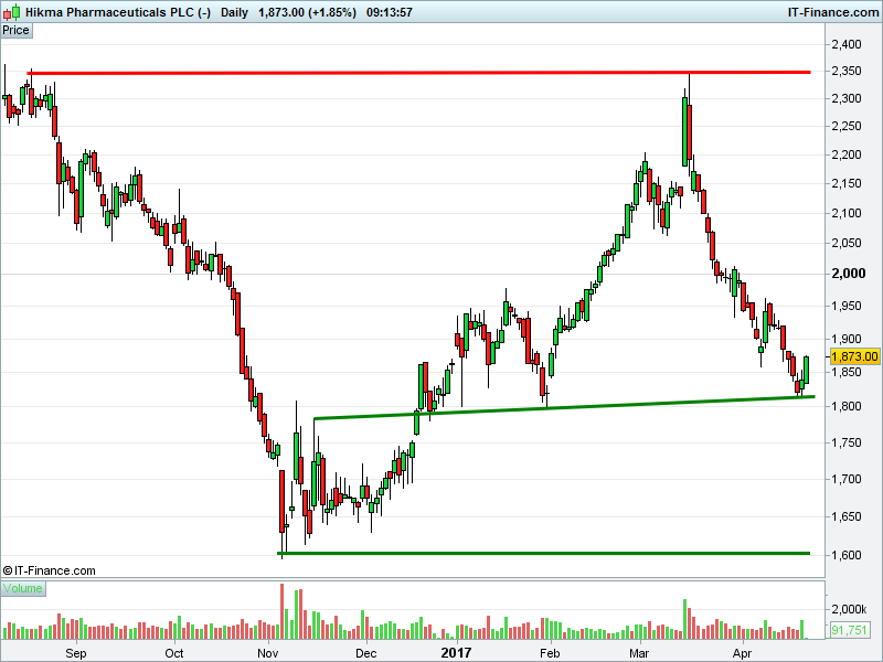 1. Will the price fall towards lows of 1600p (-14.6%)? or;