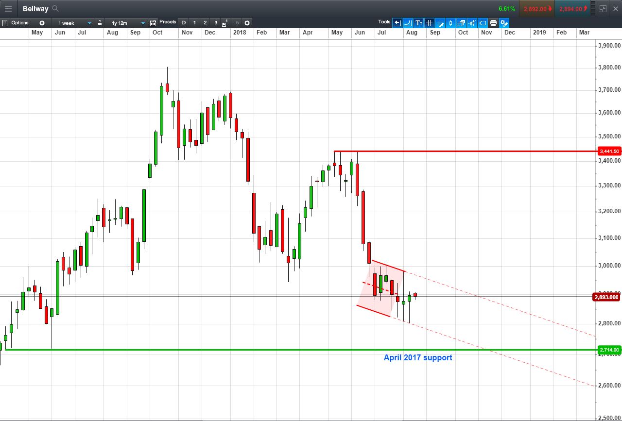 • Will the price fall towards lows of 2714p (-6.2%)? or;