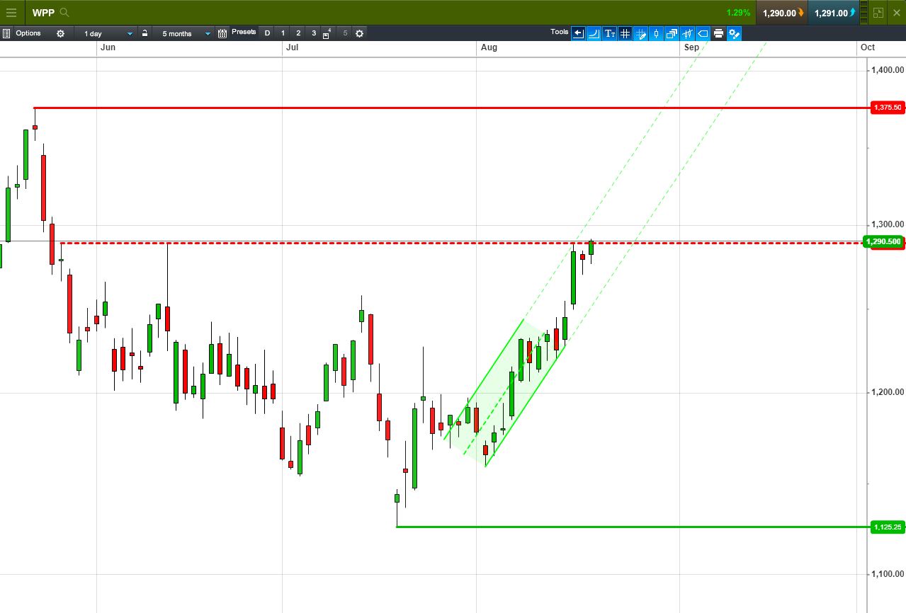 • Will the price rise towards highs of 1375p (+6.6%)?