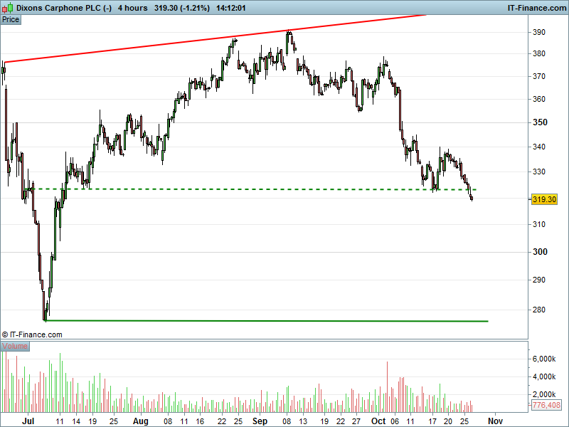 2. Will the price  fall towards lows of 276p (-14%)?