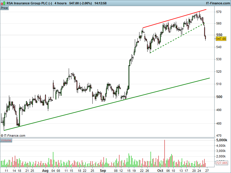 1. Will the price rise towards highs of 570p (+4%)? or;