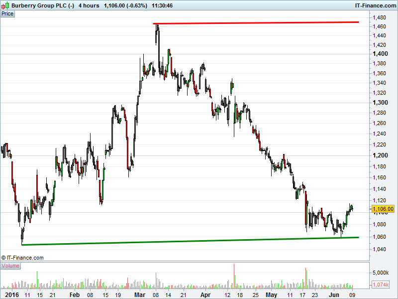 1. Will the price fall towards lows of 1050p (-5%)? or;