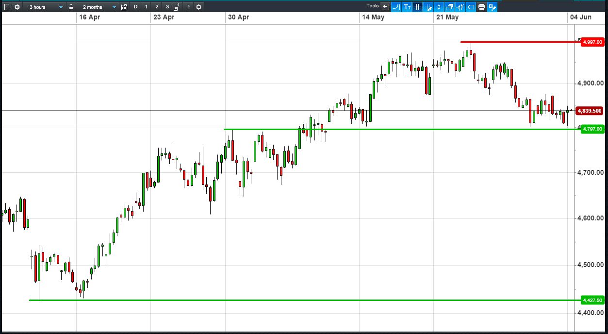 • Will the price fall towards lows of 4700p (-2.9%)? or;