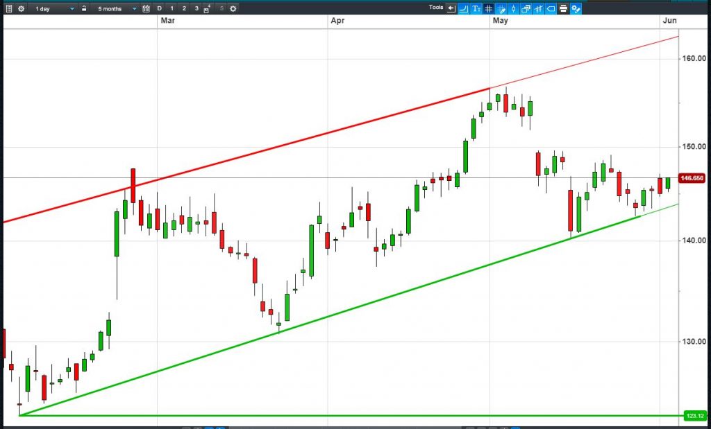• Will the price fall towards lows of 140p (-4.5%)? or;