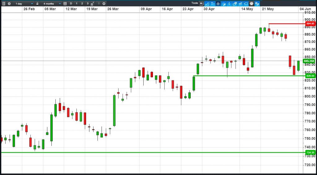 • Will the price rise towards highs of 894.95p (+5.9%)?