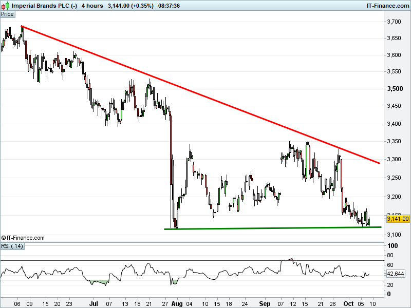 • Will the price fall towards lows of 3100p (-1.3%)? or;