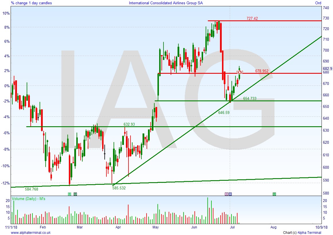 • Will the price fall towards lows of 655p (-4.1%)? or;