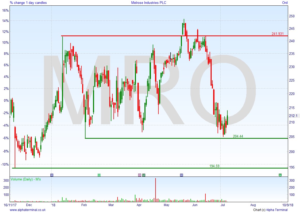 • Will the price fall towards lows of 170p (-6.5%)? or;