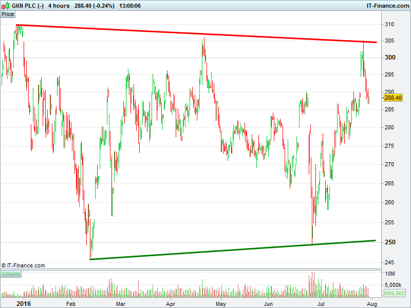 1. Will the price rise towards highs of 310p (+8%)? or;
