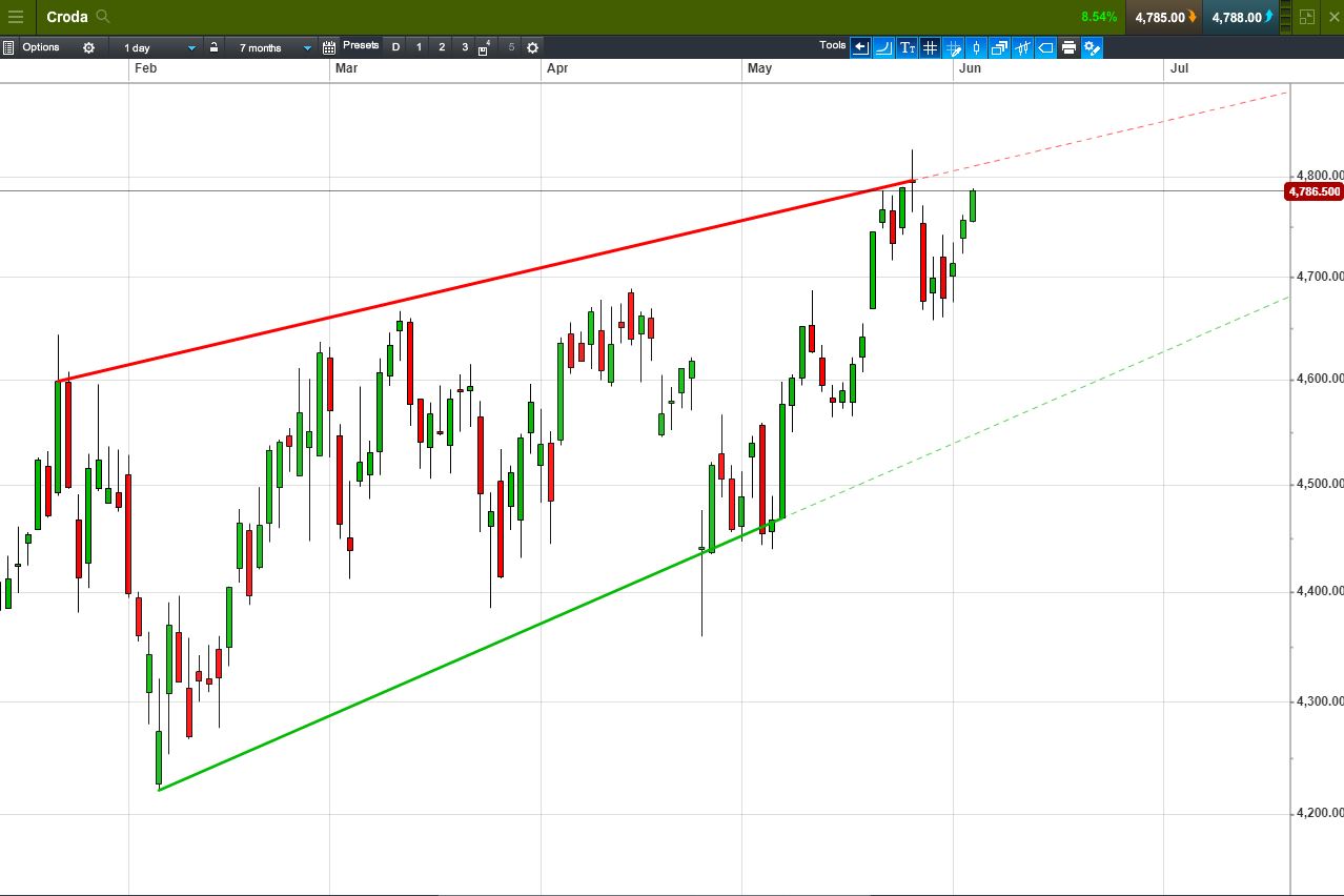• Will the price fall towards lows of 4680p (-2.2%)? or;
