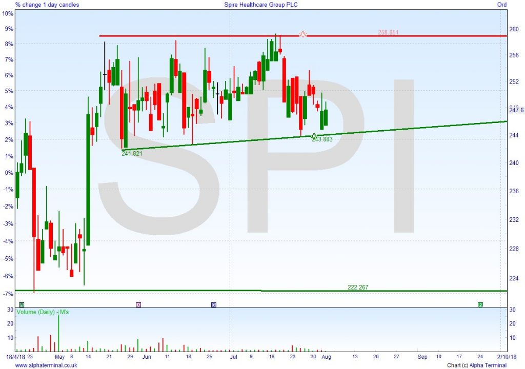 • Will the price fall towards lows of 223p (-9.9%)? or;