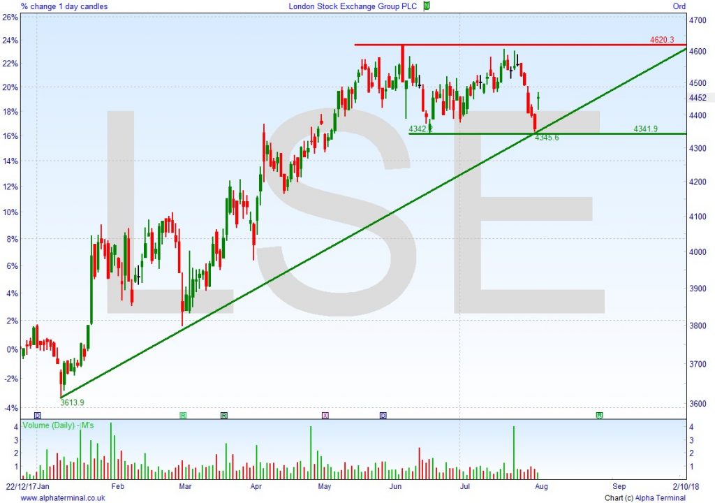 • Will the price fall towards lows of 4342p (-2.5%)? or;