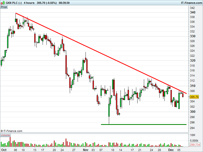 1. Will the price rise towards highs of 340p (+11%)? or;