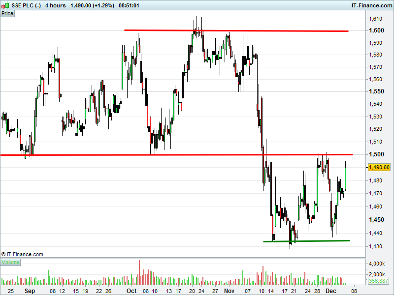 1. Will the price rise towards highs of 1600p (+7%)? or;