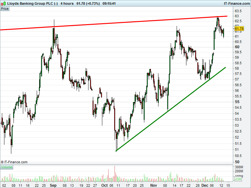 1. Will the price rise towards highs of 63p (+2%)? or;