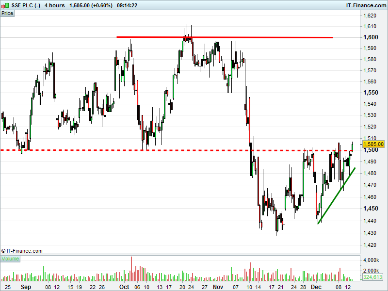 2. Will the price rise towards highs of 1600p (+6%)?