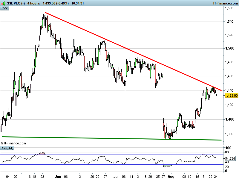 • Will the price fall towards lows of 1370p (-4.5%)?