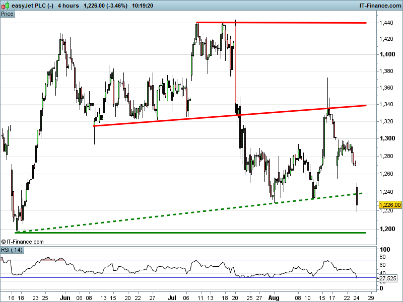 • Will the price fall towards lows of 1200p (-2.1%)?