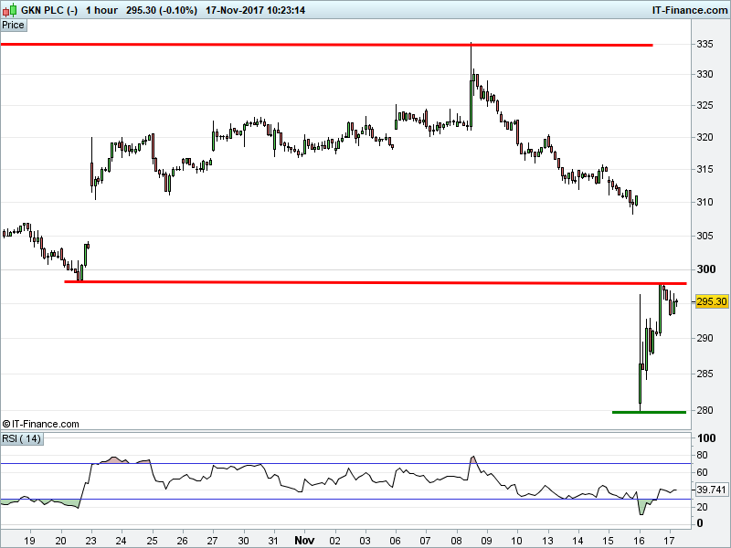 • Will the price fall towards lows of 264p (-3.8%)? or;