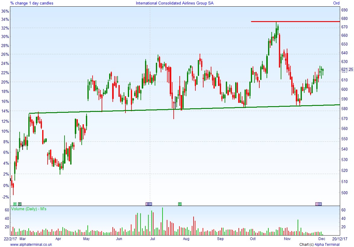 • Will the price rise towards highs of 675p (+8.7%)?