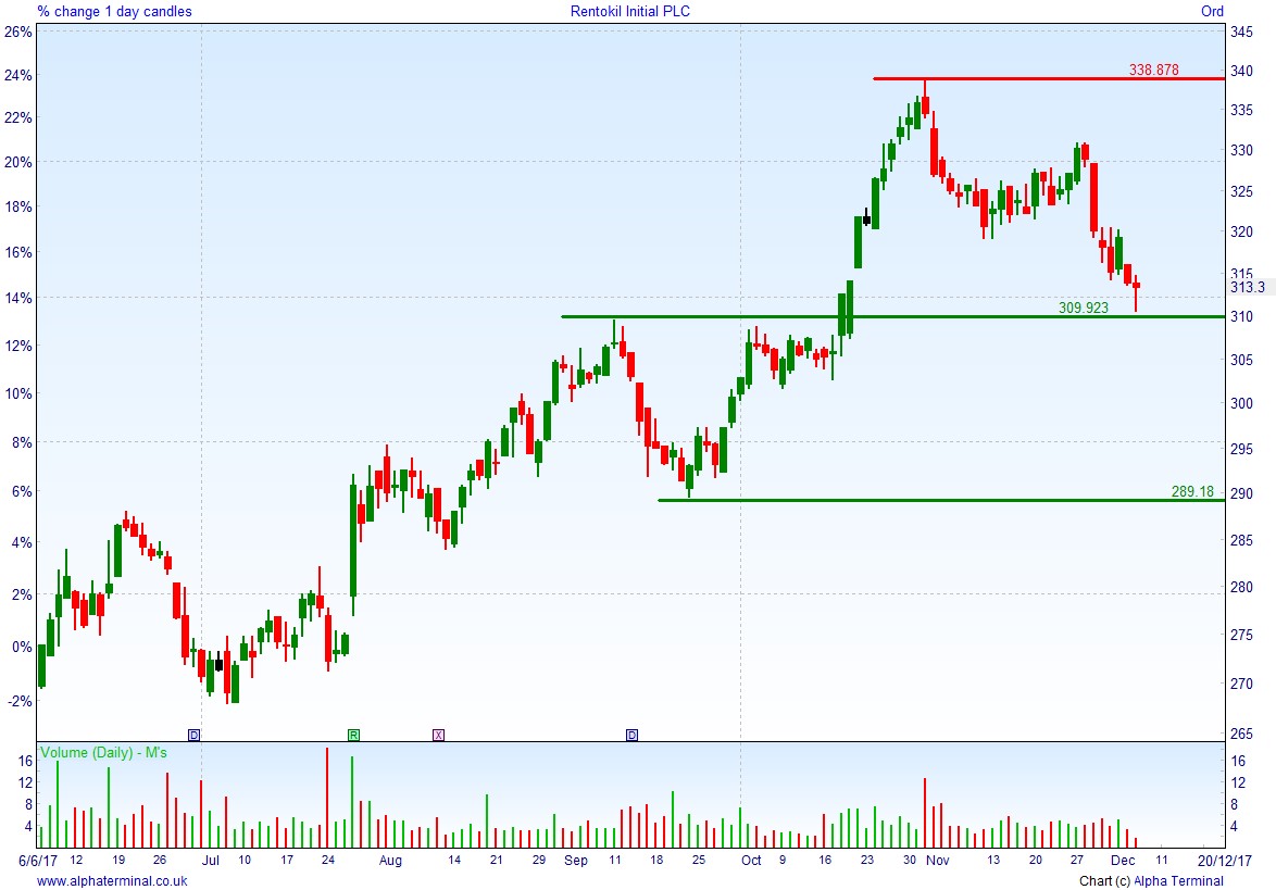• Will the price fall towards lows of 298p (-4.9%)? or;