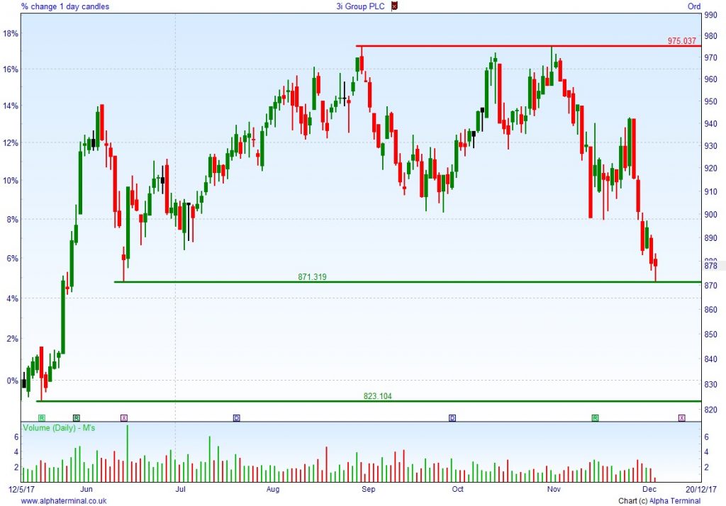 • Will the price fall towards lows of 823p (-6.2%)? or;