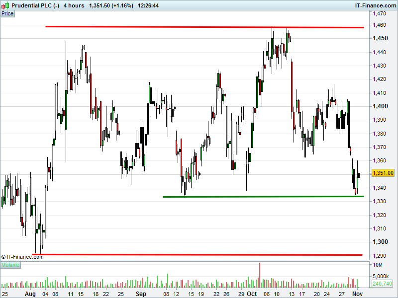 1. Will the price fall towards lows of 1290p (-5%)? or;