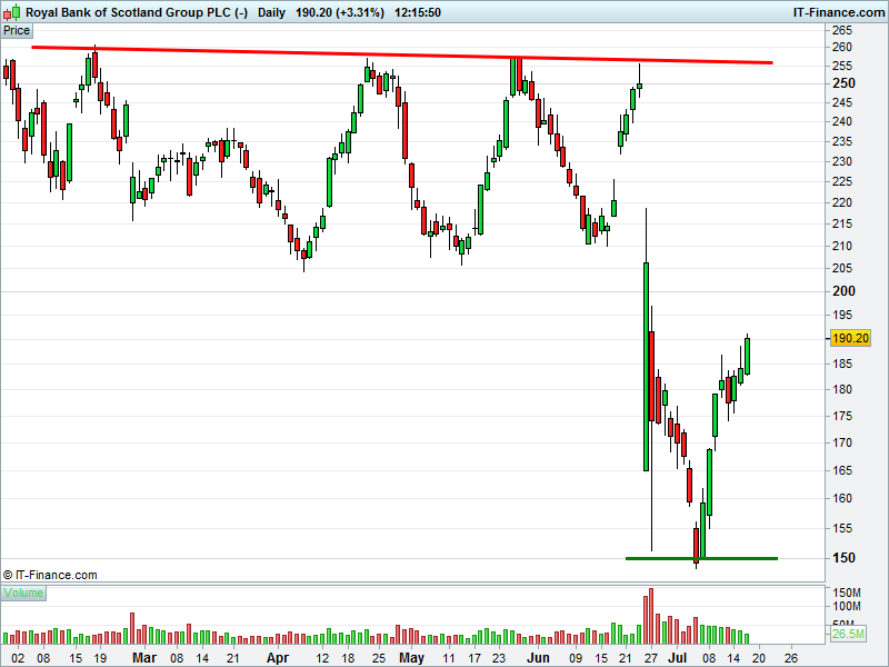1. Will the price fall towards lows of 150p (-21%)? or;