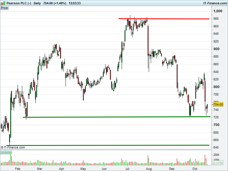 1. Will the price fall towards lows of 650p (-14%)? or;