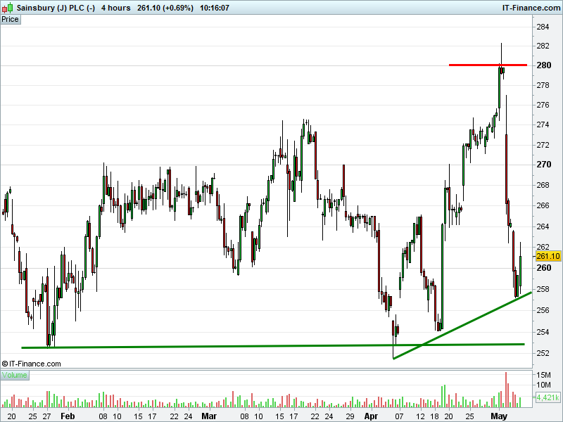 1. Will the price fall towards lows of 253p (-3.1%)? or;