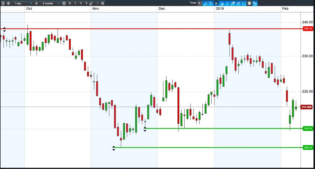 • Will the price fall towards lows of 205.1p (-5.0%)? or;