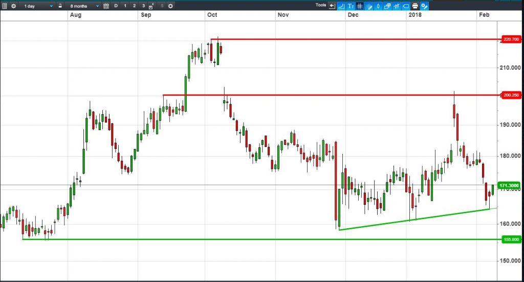 • Will the price fall towards lows of 155.8p (-9.0%)? or;