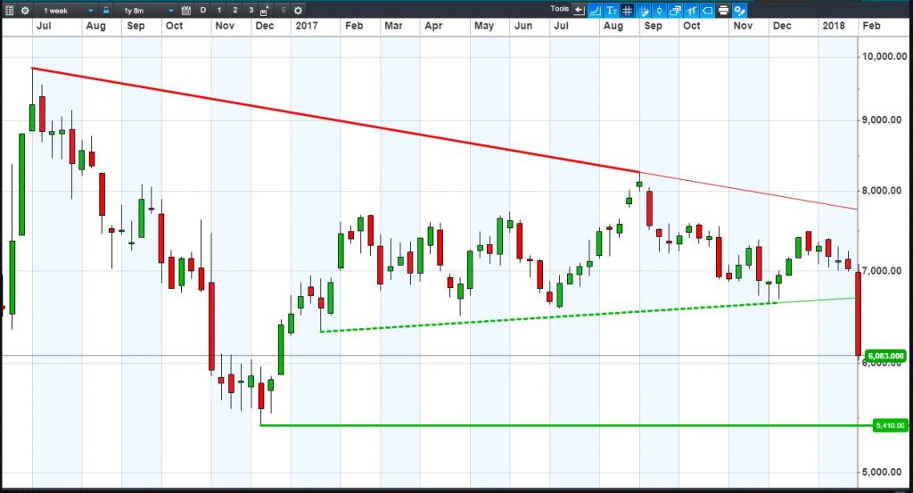 • Will the price fall towards lows of 5410p (-11.1%)?