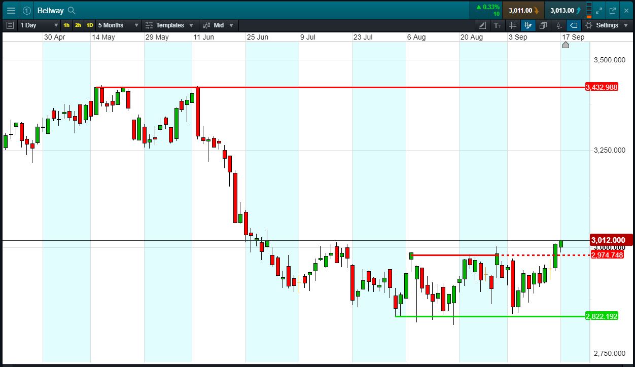 Will Bellway turn, or will it continue to break upwards beyond 3012p?