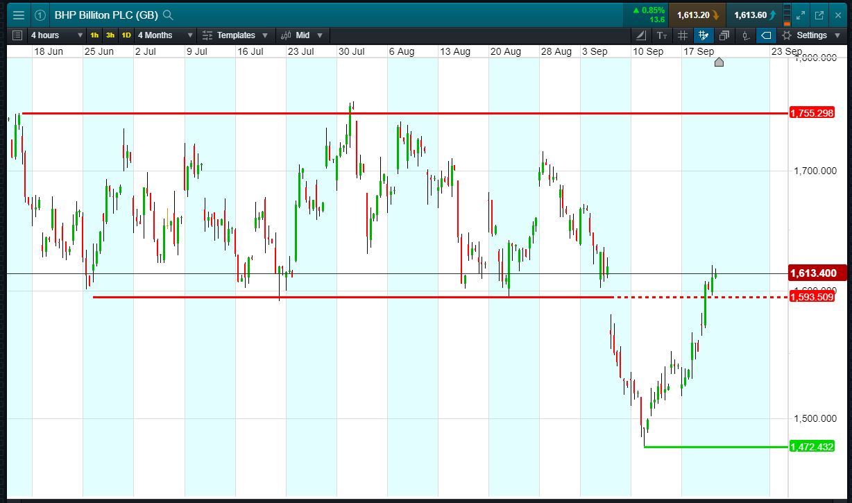 Let’s assume BHP Billiton’s trend continues to 1755p. Your profit would be £880, from your initial investment of £2,000.