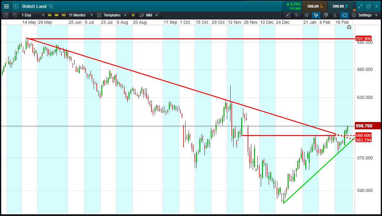 Will British Land turn, or will it continue to rise towards 701p?