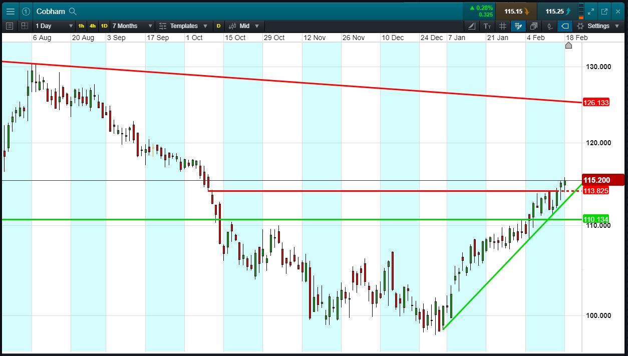 - Breakout above 110p and 113p to trade 115p (at time of writing).