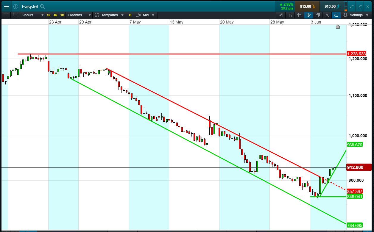 Will easyJet turn, or will it continue to rise towards 1228p?