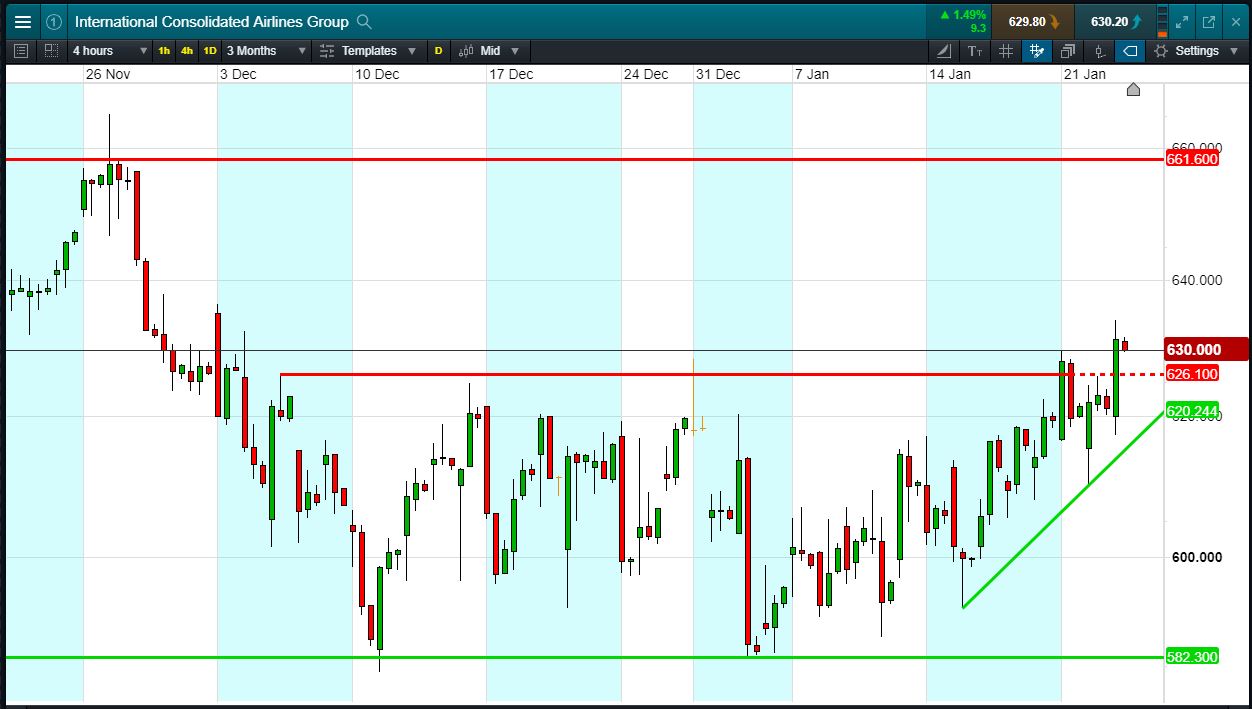 Let’s assume the IAG trend continues upwards to 661p Nov highs (+4.9%). Your profit would be £490, from your initial investment of £2,000.