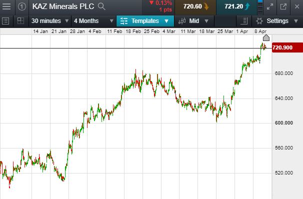 Will KAZ Minerals turn, or will it continue to rise towards 853p?