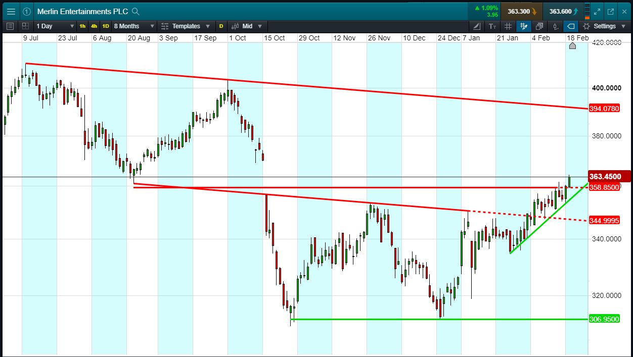 Will Merlin Entertainments turn, or will it continue up towards 394p?